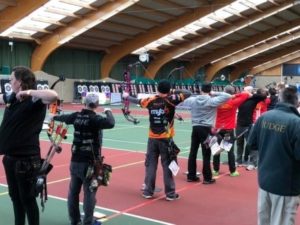 The SCAS tournament is held in a massive hall, just outside Basingstoke (big enough for 50 targets side by side(!). We had two competitors. Lydia and Patrick Sinnett-Smith (OK I just go to keep Lydia company).